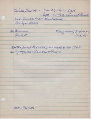 You are here: Home Repository Vig Collection Box 3 Family Sheets MICH-MONK Miska, Fred H