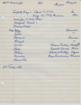 You are here: Home Repository Vig Collection Box 3 Family Sheets TRAC-TYSO Triplett, Ray