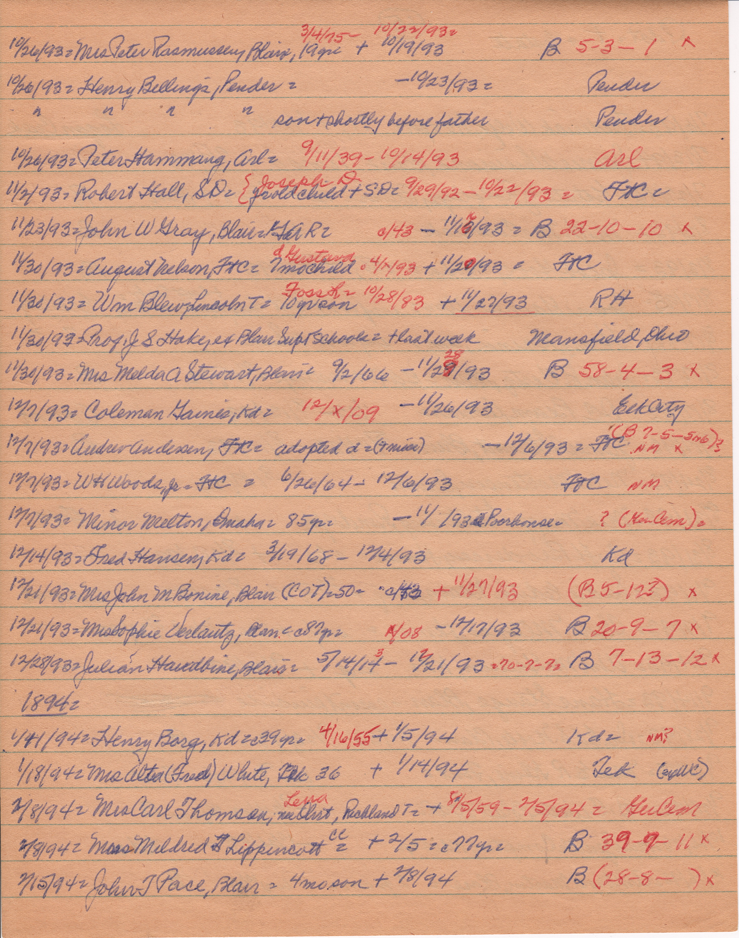 Pilot-Tribune Death and Estate Notices 1893-1894